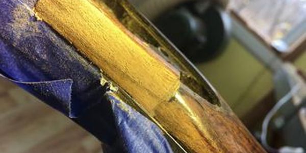 The last L.C. Smith Deluxe 20 gauge, unfinished as Charles Jared was working on this when he passed away. Gun is still in it's unfinished state.